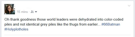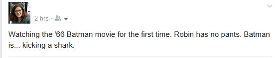 I have just watched the movie that reinvented the word “campy.” I’m working on a research project for college that required watching a lot of Superhero movies. I had to pick from certain decades, so I picked the most famous ones I knew of. Of course, that meant I had to watch the 1966 Adam West Batman movie.